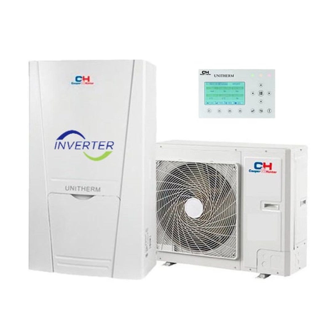 Pompă de căldură inverter CH-HP12SINK2 UNITHERM 2 tip „aer-apă” cu un compresor cu două rotoare și capacitatea de a funcționa în modurile de aer condiționat, încălzire, alimentare cu apă caldă la temperaturi exterioare de la -25°C la +48°C.